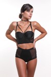 O Bralet preto Norah é um clássico sutiã com bojo macio e confortável, arcos, barbatanas e recortes em tule preto brilhante. Tiras simétricas que transpassam no colo trazem delicadeza e geometrismo para esta peça especial, que existe desde o nascimento da marca. Fecho triplo para melhor ajuste nas costas. Atemporal!