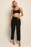 Novidade! Agora criamos roupas e apresentamos nossa amada calça preta Valencia. Feita de linho e viscose, ela transmite a naturalidade e fluidez necessária para os movimentos do dia dia. Seu cós é mais larguinho e possui elástico interno, para melhor ajuste da cintura. Não possui bolso. Modelagem reta de cintura mais alta. Ideal para ser usada com nossos amados tops neste verão. Indicamos também combiná-la com o Kimono Preto Guadalupe, formando um lindo conjunto atemporal e versátil.