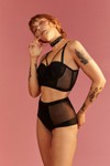 A Hot Pants Tule Agnés é uma calcinha cintura alta preta de cetim com elastano e tule. Possui elástico na cintura para melhor ajuste, recortes estratégicos e costuras reforçadas que deixam a estrutura desta peça muito especial. Detalhe para os delicados e gráficos recortes translúcidos laterais da peça. Esta peça é totalmente dupla e por isso não possui acabamentos em elástico no entrepernas, para não marcar o bumbum.